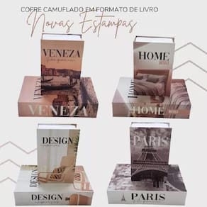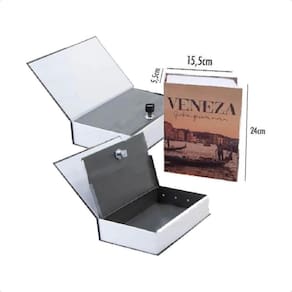 Cofre Livro Camuflado com chaves - Ideal para guardar jóias, dinheiro e documentos Super discreto e seguro O Cofre camuflado é ideal para guardar objetos de valor de forma discreta e despercebida. Super realista, tem aparência de livro e pode ser camuflado facilmente na estante ou prateleira. São 4 opções de capas para você escolher: - Capa New York - Capa Coliseu - Capa dicionário inglês Azul - Capa dicionário inglês Preta Super resistente, possui um mecanismo de cofre com chave e pode ser levado em viagens para transportar coisas de valor sem levantar suspeitas. Fabricado em metal, porém revestido com uma capa idêntica às capas de livros convencionais. Acompanham 2 chaves para maior segurança. Tamanho Aproximado: 24cm x 15,5cm x 5,5cm