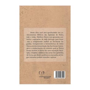 Nesta obra você será aprofundado nos conhecimentos Bíblicos das Epístolas de Pedro, João e Judas. Matthew Henry nos apresenta contextos e aplicações de cada perícope para levar-nos a compreender melhor as Escrituras Sagradas, enriquecendo a hermenêutica do leitor. para a correta interpretação das Escrituras é necessário o conhecimento do contexto qual os Textos foram escritos, e Henry faz uma exposição facilitada, completa e didática das cartas dos apóstolos, de forma que desde acadêmicos avançados até leigos iniciantes podem entender e aplicar. Ean: 9786559967025
