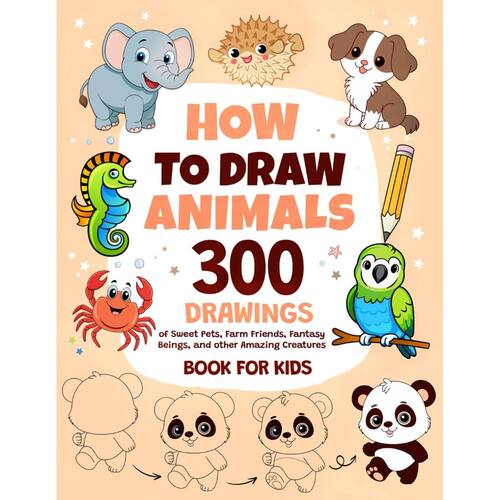 Como desenhar animais: 300 desenhos de animais de estimação fofos, amigos exóticos e de fazenda, seres fantásticos e outras criaturas incríveis | Livro para crianças