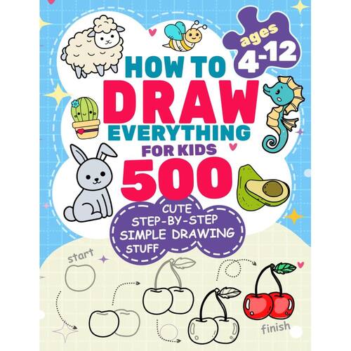 Como desenhar tudo para crianças: 500 coisas fofas de desenho simples, passo a passo: com comida incrível, kawaii, animais, presentes e outros (como desenhar livros para crianças)