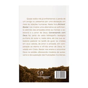 Conversando com deus é uma das diversas obras teológicas escritas por richard baxter, escritor e poeta da igreja puritana na inglaterra do século xvii. Nesta obra, baxter debruça-se em refletir sobre a insuficiência da amizade humana e propõe conselhos para conversar com deus em momentos de frustração e necessidade. O autor parte de referências bíblicas do antigo e novo testamentos como forma de abordar essas questões e assim, dar continuidade a seu legado como escritor teológico de base puritana. Marca: Não Informado Ean: 9786589920090