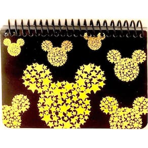 Este é o livro de autógrafos em espiral do Mickey Mouse. O tamanho é de aproximadamente 14 x 10 cm. Cor: Preto. - Mickey Mouse - Cabeça prateada e dourada com cor preta - Livro de autógrafos em espiral