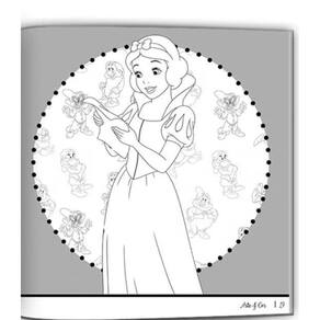 Dê cores para personagens como o príncipe encantado, os sete amigos, os animais do bosque, a rainha má e a bruxa que lhe dá uma maçã envenenada