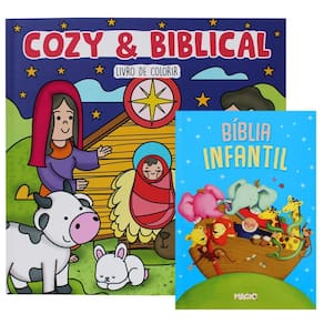 Kit Livro de Colorir Cozy & Biblical e Bíblia Infantil com Atividades - Magic Kids.