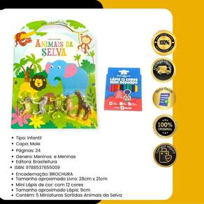 Contém : 1 unidade livro infantil de colorir animais da selva mais cor e diversão com 5 mini animais + 12 mini lápis de cor