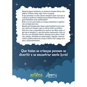 Segundo alguns estudiosos, as primeiras emoções básicas são: alegria, tristeza, medo, nojo, raiva e surpresa. O que pensamos ao falar dessas emoções? Como será que as crianças se sentem em relação ao que sentem? Como elas conseguem identificar esses sentimentos? Este é um livro para todas as crianças entenderem e significarem a emoção para elas. Quando nos tornamos pais, temos a oportunidade de criar e ensinar a outro ser humano o que é a vida em todos os sentidos. Este livro traz a importância de mostrar aos filhos como e o que são as emoções e o que elas podem representar a eles no dia a dia, com atividades lúdicas, desenhos para colorir, histórias, poemas, atividades de memorização, cognição, desenvolvendo a prática motora da criança e dando a ela o espaço livre para o autoconhecimento. Que todas as crianças possam se divertir e se encontrar neste livro! Marca: ARTERA EDITORA