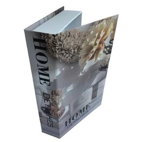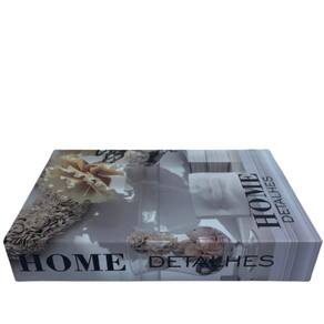 Livro de papelão decorativo estampa 'Home Detalhes' com tampa que abre.
