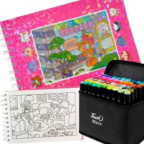 Este kit já acompanha um conjunto com 60 canetinhas coloridas, ou seja, você não precisa se preocupar com nada! É só abrir e começar a colorir!
