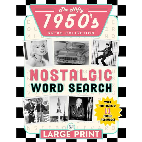O livro de quebra-cabeças nostálgico de busca de palavras The Nifty 1950 para idosos e adultos com estampa extra grande: quebra-cabeças divertidos para encontrar palavras em fontes grandes, fáceis e... de manter sua mente nítida (coleção retrô)