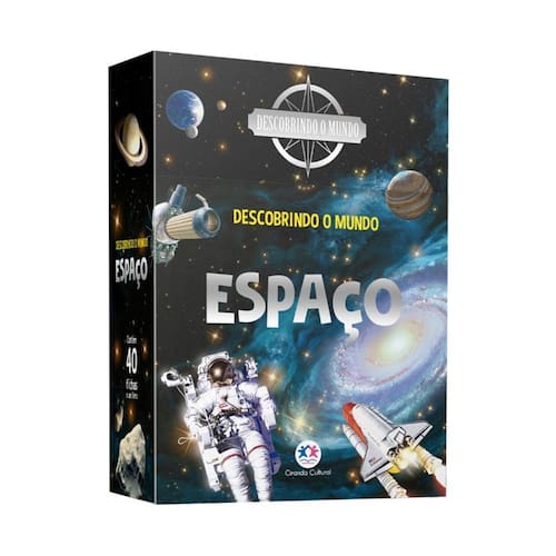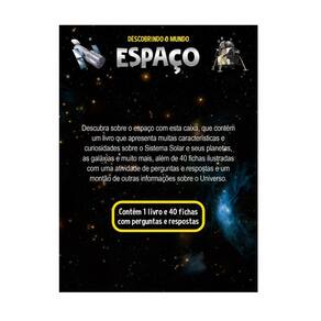 Descubra mais sobre o espaço com esta caixa, que contém um livro que apresenta muitas características e curiosidades sobre o Sistema Solar e seus planetas, as galáxias e muito mais, além de 40 fichas ilustradas com uma atividade de perguntas e respostas e um montão de outras informações sobre o Universo.