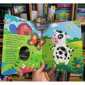 Livros toque e sinta são livros sensoriais, geralmente infantis, que possuem diferentes texturas nas páginas para estimular o tato das crianças. Eles podem ter partes felpudas, ásperas, lisas, rugosas ou em relevo, permitindo que os pequenos explorem sensações variadas enquanto leem. A vaquinha sorridente, com seu corpo macio e suas manchas, é uma ótima maneira de ensinar sobre a vida no campo e os animais que vivem lá. Encontre essa linda aventura aqui.