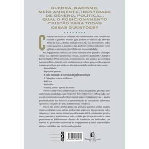 , , meio-ambiente, identidade de gênero, política... Qual o posicionamento cristão para todas essas questões? Cristãos em todas as culturas são confrontados com tendências sociais e questões morais que podem ser difíceis de abordar. Além do mais, a Bíblia, muitas vezes, não fala diretamente sobre esses assuntos e, quando o faz, pode ser confuso entender como aplicar os ensinamentos bíblicos à nossa realidade. Em Engajamento cultural: um curso intensivo sobre questões contemporâneas e as diferentes perspectivas cristãs, os autores Joshua D. Chatraw e Karen Swallow Prior oferecem, primeiramente, um amplo e acessível panorama sobre a relação entre cristianismo e cultura para, então, explorar temas específicos que estão em alta na sociedade moderna, tais como: · Sexualidade · Papéis de gênero · A vida humana e a reprodução pela tecnologia · A Criação e o meio-ambiente · Política · Trabalho · , e pena de morte O livro conta com a colaboração de mais de quarenta grandes pensadores da atualidade, que propõem diferentes visões sobre cada tópico, apresentando suas abordagens em suas próprias palavras e, assim, possibilitando aos leitores a oportunidade de considerar diferentes opiniões a respeito de uma determinada temática. Único em como aborda tanto as grandes questões sobre engajamento cultural como outros problemas urgentes, Engajamento cultural oferece uma vasta e minuciosa discussão útil à estudantes, professores, pastores, acadêmicos e todo cristão que deseja descobrir como posicionar-se biblicamente diante de temáticas tão delicadas. Um convite ao pensamento crítico e ao engajamento a partir das verdades eternas contidas nas Escrituras Sagradas. Especificações Título: Engajamento cultural Autor: Joshua Chatraw; Karen Prior Tipo de capa: Brochura Número de páginas: 416 páginas Data de publicação: 15/02/2021 ISBN-10 : 6556891614 ISBN-13 : 978-6556891613