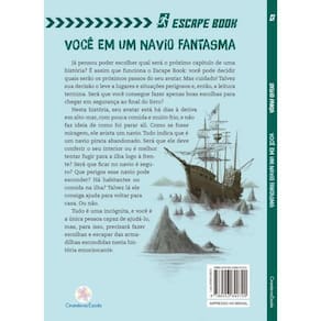 Já pensou poder escolher qual será o próximo capítulo de uma história É assim que funciona o Escape Book. Você pode decidir quais serão os próximos passos do seu avatar. Mas cuidado pode ser que sua escolha te leve a lugares e situações perigosos e, então, o jogo acaba. Será que você consegue fazer apenas boas escolhas para chegar em segurança ao final do livro Nesta história, seu avatar está há dias à deriva em alto-mar, com pouca comida e muito frio, e não faz ideia de como foi parar ali. Como se fosse miragem, ele avista um navio. Tudo indica que é um navio pirata e que está abandonado. Será que ele deve ver o que tem lá dentro ou é melhor tentar fugir para a ilha que está logo à frente Será que ficar no navio é seguro Que perigos ele pode esconder Há habitantes ou comida na ilha Talvez ali ele consiga ajuda para voltar para casa. Ou não. Tudo é uma incógnita e você é a única pessoa que pode ajudá-lo, mas, para isso, precisará fazer escolhas e escapar das armadilhas que esta história emocionante esconde.