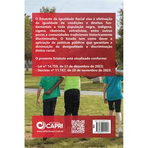 O estatuto da igualdade racial visa a efetivação da igualdade de condições e direitos fundamentais a toda população negra, indígena, cigana, ribeirinha, extrativista, entre outros povos e comunidades tradicionais historicamente discriminados. O estado tem como dever a aplicação de políticas públicas que garantam a diminuição da desigualdade e discriminação étnico-racial. O presente estatuto está atualizado conforme: - lei nº 14.759, de 21 de dezembro de 2023; - decreto nº 11.787, de 20 de novembro de 2023.