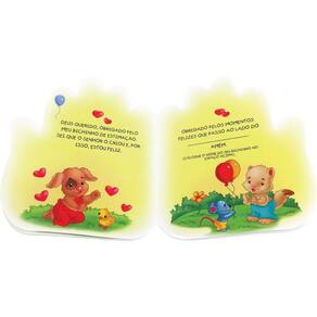 O caminho para chegar ao coração de Deus é a oração. Palavras singelas e sinceras criam uma comunhão direta com o Senhor. Criança que ora é abençoada e feliz O Livro Orações de Louvor faz parte da Coleção Falando com Papai do Céu. Falando com Papai do Céu é a coleção que veio para ajudar a criança a iniciar seu diálogo com Deus. E o caminho para chegar ao coração de Deus é a oração. Palavras singelas e sinceras criam uma comunhão direta com o Senhor. Orações para todas as ocasiões do dia até a hora de dormir. Criança que ora é criança abençoada e feliz. Seja uma delas! Editora: SBN ISBN: 9788561486556 Dimensões: 13,5cm x 16cm Número de Páginas: 10 Acabamento: Cartonado Ano de Publicação: Idioma: Português Condição do Item: Novo Tipo de Narração: Manual Tipo de Capa: Comum Formato: Papel Autor: 2008
