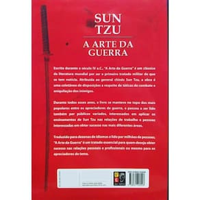 "A arte da guerra" é um clássico da literatura mundial por ser o primeiro tratado militar de que se tem notícia. Atribuída ao general chinês Sun Tzu, a obra é uma coletânea de disposições a respeito de táticas de combate e aniquilação dos inimigos. Durante todos esses anos, o livro se manteve no topo dos mais populares entre os apreciadores de guerra, e passou a ser lido também por públicos variados, interessados em aplicar os ensinamentos de Sun Tzu nas relações de trabalho e pessoas interessadas em obter sucesso em diferentes áreas. Traduzido para dezenas de idiomas, é um tratado essencial para quem deseja obter sucesso nas relações pessoais e profissionais ou mesmo para os apreciadores do tema. Versão trilíngue: português, inglês e espanhol.