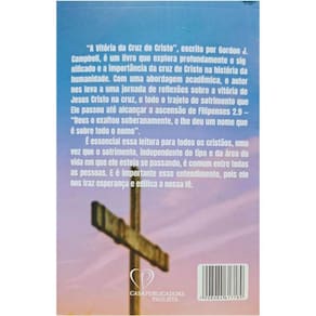 “A Vitória da Cruz de Cristo”, escrito por George C. Morgan, é um livro que explora profundamente o significado e a importância da cruz de Cristo na história da humanidade. Com uma abordagem acadêmica, o autor nos leva a uma jornada de reflexões sobre a vitória de Jesus Cristo na cruz, e todo o trajeto de sofrimento que Ele passou até alcançar a ascensão de Filipenses 2.9 —“Deus o exaltou soberanamente, e lhe deu um nome que é sobre todo o nome”. É essencial essa leitura para todos os cristãos, uma vez que o sofrimento, independentemente do tipo e da área devida em que ele esteja se passando, é comum entre todas as pessoas. E é importante esse entendimento, pois ele nos traz esperança e edifica a nossa fé.