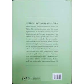 "Não há quem não conheça um devoto de santo Antônio. À intercessão do religioso português, milhares de pessoas recorrem a todo momento, a fim de receberem as mais diversas graças. Neste livro, o leitor poderá conhecer um pouco mais da vida e das virtudes deste grande santo e entender como ele se tornou tão querido entre nós. Como em todos os títulos da coleção Santos da nossa vida, a obra traz ainda ricas ilustrações e orações importantes para quem deseja contar com o apoio do santo de Pádua."
