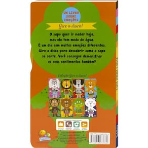 SOBRE ESTE LIVRO O sapo quer ir nadar hoje, mas ele tem medo de água. É um dia com muitas emoções diferentes. Gire o disco para descobrir como o sapo se sente. Você consegue demonstrar os seus sentimentos também