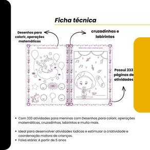 Embarque neste especial livro de atividades para meninas. Desenhos para colorir, operações matemáticas, cruzadinhas, labirintos e muito mais.