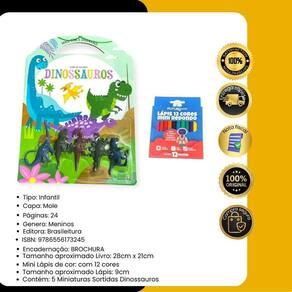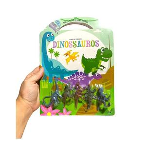 Contém : 1 unidade livro infantil de colorir mais cor e diversão com 5 mini dinossauros + 12 mini lápis de cor