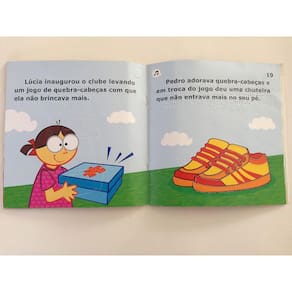 Livro infantil - o clube da troca Do problema de lúcia, surgiu uma solução para toda a vizinhança para poder conseguir uma mochila nova, a menina, de uma maneira mais criativa, inventou uma solução que resolveu não só o seu problema, mas também o de todos os colegas e até mesmo de seus pais: criou o clube da troca Todo mundo se desfaz do que não usa e consegue algo que queria nessa brincadeira, lúcia conseguiu não só uma linda mochila nova como um trabalho para seu pai O livro possui edição em braille e fonte ampliada, além de versão falado com audiodescrição Autora: ana cristina melo, ilustrado por mônica fuchsuber.