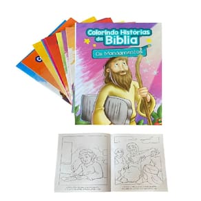Contém: 10 Livros Colorindo Histórias Da Bíblia Infantil