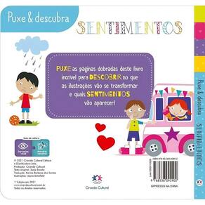 Livro Interativo Puxe E Descubra - Sentimentos - Ciranda Cultural O livro Puxe e Descubra - Sentimentos é uma ferramenta interativa ideal para crianças a partir de 2 anos. Com páginas desdobráveis e ilustrações que se transformam ao serem puxadas, estimula a percepção visual, o desenvolvimento emocional e os primeiros conceitos de forma lúdica e envolvente. Perfeito para pais e educadores que buscam trabalhar as emoções com os pequenos de maneira divertida e educativa. Código: 104001 Autor: Susie Brooks Formato: Capa Dura Quantidade de páginas: 06 páginas Dimensões aprox. do livro em cm: 1x18x18 Peso liq. do livro na embalagem: 200g Conteúdo da Embalagem: 01 livro desdobrável Composição/material: Papel Cartonado Acabamento: Verniz UV localizado Idade recomendada: A partir de 2 anos Garantia: 90 dias contra defeitos de fabricação pelo fabricante. Imagens meramente ilustrativas. As cores e tonalidades podem variar. Uso - Escolar Cor Predominante - Colorido Tipos de Livros - Literatura Infantil