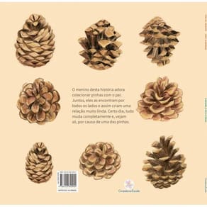 O menino desta história adora colecionar pinhas com o pai. Juntos, eles as encontram por todos os lados e assim criam uma relação muito linda. Certo dia, tudo muda completamente e, vejam só, por causa de uma das pinhas.