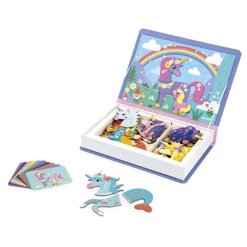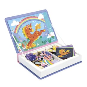 O Magneti'Book Unicórnio é um convite para um mundo mágico cheio de cores e fantasia! Com 44 peças magnéticas e 10 cartões, as crianças podem recriar as cenas sugeridas ou soltar a imaginação para criar suas próprias combinações encantadas. Esse brinquedo educativo desenvolve a criatividade, o raciocínio lógico e a coordenação motora, garantindo momentos de diversão em casa ou durante viagens. Qual história mágica você vai inventar hoje?