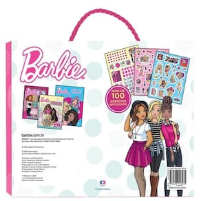 Venha se divertir com a maleta de diversão e adesivos da Barbie Com um livro de colorir, um livro de atividades e um de adesivos para se divertir colorindo e brincando Mais de 100 adesivos reutilizáveis para colar onde você quiser Contém: Livro de colorir, livro de atividades e livro de adesivos.