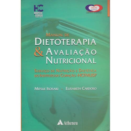 Livro - Manual de Dietoterapia e Avaliação Nutricional, Isosaki Manual de Dietoterapia e Avaliação Nutricional Serviço de Nutrição e Dietética do Instituto do Coração HCFMUSP' é livro que procura transmitir os conhecimento e a vasta experiência dos autores e colaboradores acumulados ao longo dos 26 anos de vida desta instituição Seu texto é extremamente didático objetivo vazado em linguagem muito bem do diaadia do atendimento do cardiopata o que se dá nos níveis hospitalar e ambulatorial assim como no consultório Autor: Isosaki Mitsue/ Cardoso Elisabeth Editora: atheneu ISBN: 8573796820 ISBN13: 9788573796827 Livro em português Número de Páginas: 218 Edição: 1ª Ano de Publicação: 2004 Encadernação: bruchura Ean: 9788573796827