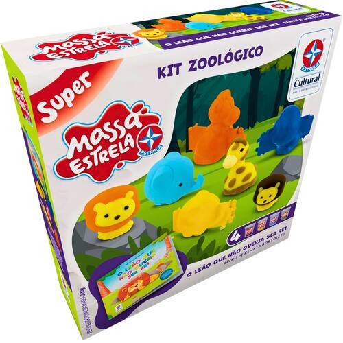 Descrição do produto : Astrogildo é um leão cansado da vida de rei. A Zebra, a Hiena, o Hipopópatmo, a Girafa e o Elefante não conseguem entender o que acontece com ele. Os animais assustados, tentam convencê-lo a voltar a fazer o seu trabalho como rei, mas sem sucesso, até a Girafa e o Elefante encontrarem uma solução para a harmonia reinar novamente na floresta. A história "O leão que não queria ser rei" da autora Renata Bortoleto é enriquecida com a Massa Estrela e diversos acessórios para modelagem! A interação entre o livro e a massa estimula o desenvolvimento de habilidades para a aquisição de noções espaciais e movimentos motores importantes para o processo de alfabetização! Boa leitura e divirta-se! O kit vem com 1 livro de 24 páginas, 3 moldes 3D de animais, faquinha, rolinho, 4 potes de 50g de Massa Estrela e 1 cenário cartonado. :