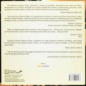 INCLUI CD COM MENSAGENS NAS VOZES DOS COMUNICADORES DA RÁDIO GLOBO"Arrumemos nossos lares; façamos a faxina do perdão; acendamos as luzes do amor, preparemos um pinheiro de Natal com lindos enfeites de virtudes; e elaboremos uma ceia, onde os pratos principais sejam união e paz.Natal é a festa do amor e da solidariedade!"Padre Reginaldo Manzotti"Uma obra que fala do Natal, do nascimento de Jesus, do amor que Ele nos ensinou, é sem dúvida um belo trabalho, exemplo e lição de como amar o próximo.Parabéns aos comunicadores da Rádio Globo, ao autor Antonio Marcos Pires e à Editora Santuário por esta obra de paz."Rubens Campos Diretor Geral do Sistema Globo de Rádio"Mais um Natal se aproxima e mais um ano chega ao fim...É tempo de, mais uma vez, desejar um Feliz Ano Novo.Que o amor prevaleça sobre todas as coisas...Deus é amor!"Susana Vieira Atriz"Querido Antonio Marcos Pires, parabéns por este belíssimo trabalho de Natal, você desta forma reclina e nos ajuda acolher Jesus na manjedoura de nosso coração.A minha bênção sacerdotal."Padre Antonio Maria"Vamos deixar que as mensagens penetrem em nossas almas e alimentem nossos sonhos e nossos desejos de Amor e Paz."José Bonifácio de Oliveira Sobrinho (Boni)Apoio Rádio GloboINFORMAÇÃO ADICIONALACABAMENTO: BrochuraPESO: 0,251DIMENSÕES: 18×18EDIÇÃO: 1ªANO DE LANÇAMENTO: 2011NÚMERO DE PÁGINAS: 104ESTADO DO LIVRO: LACRADO Acompanha CD