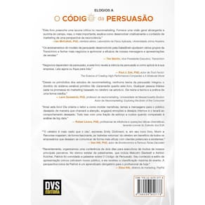 Livro: O Código da Persuasão: Como o Neuromarketing pode ajudar você a persuadir qualquer pessoa, a qualquer hora, em qualquer lugarDesde o início dos tempos, os humanos tentam influenciar uns aos outros. Acadêmicos, estudiosos e pesquisadores desenvolveram inúmeras teorias de persuasão, mas bilhões de dólares ainda são desperdiçados em anúncios ou campanhas que não conseguem atrair a atenção ou motivar as pessoas a agirem.Fruto de quase duas décadas de pesquisa sobre o efeito da propaganda e das mensagens de vendas no cérebro humano, Dr. Christophe Morin e Patrick Renvoise oferecem o primeiro modelo abrangente de persuasão baseado nas pesquisas mais recentes em neurociência, psicologia de mídia e economia comportamental. Seguindo os passos de Daniel Kahneman e Richard Thaler ambos ganhadores do Prêmio Nobel de Economia, em 2002 e 2017, respectivamente , os autores revelam que as mensagens persuasivas devem chegar primeiro ao cérebro primitivo, o sistema cerebral mais antigo, porém o mais dominante no processo de persuasão.Depois de publicarem Neuromarketing: Understanding the Buy Buttons in Your Customers Brain, em 2007, e treinarem mais de 200 mil executivos em todo o mundo desde então, Morin e Renvoise explicam em termos simples como mensagens persuasivas afetam funções cerebrais críticas como atenção, emoções, esforço cognitivo e tomada de decisão. E, o mais importante, revelam um passo a passo simples chamado NeuroMap, que fornece a maneira mais eficaz de criar mensagens que podem persuadir qualquer pessoa, a qualquer hora, em qualquer lugar.Em O Código da Persuasão, você descobrirá:- O funcionamento de dois sistemas cerebrais concorrentes que gerenciam nossas respostas a qualquer mensagem persuasiva: o rápido Sistema 1 primitivo versus o lento Sistema 2 racional - Os únicos 6 estímulos persuasivos que se comunicam diretamente com o cérebro primitivo- Os 4 passos para maximizar suas chances de persuadir sistematicamente- Os 6 elementos de persuasão e os 7 catalisadores de persuasão que explicam cientificamente a química por trás da persuasão- Mais de 30 casos de negócios que ilustram a eficácia do modelo- E 293 referências científicas que embasam o NeuroMapO NeuroMap já foi aclamado por muitas empresas de sucesso como Siemens, TransUnion, Epson, GE, PayPal e muitas outras. Com O Código da Persuasão, você aprenderá a se tornar um excelente persuasor usando um processo comprovado, mas simples, baseado em ciência de ponta. Um pôster do NeuroMap está incluído no verso desta capa.Título: O Código da PersuasãoSubtítulo: Como o Neuromarketing pode ajudar você a persuadir qualquer pessoa, a qualquer hora, em qualquer lugarAutores: Christophe Morin e Patrick RenvoiseNº de Páginas: 352Selo: DVS EDITORAEdição: 1Data de publicação: 28/02/2023Idioma: portuguêsCondição do item: novoTipo de narração: manualTipo de capa: comumFormato: PapelAltura cm : 23,0Largura cm : 16,0Lombada cm : 1,8ISBN: 978-65-5695-077-8