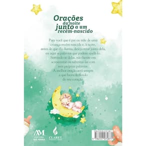 Livro Orações da noite junto a um bebê recém-nascido Ave-Maria As preces deste livro foram elaboradas aos pais que a cada noite desejam rezar por seu filho recém-nascido na hora em que ele está para dormir, podendo ser adaptadas àquilo que a criança viveu durante o dia. A obra apresenta várias formas de oração, para que os pais descubram aquelas que lhes pareçam mais apropriadas.