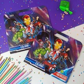 A linha de produtos Aprender, Colorir e Brincar visa estimular o desenvolvimento criativo e motor das crianças a partir de 3 anos, transformando os momentos mais simples em pura diversão. Possuem alças para carregar e folha de adesivos.