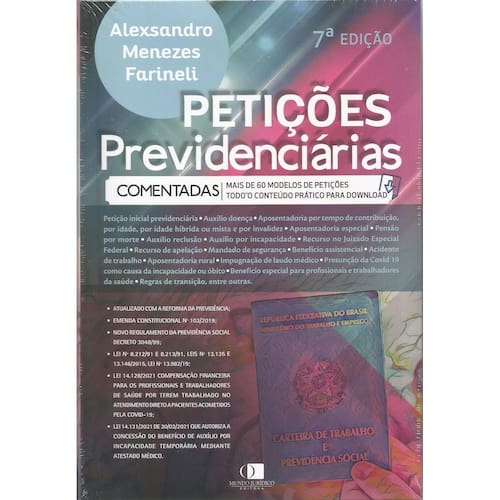 poderíamos citar inúmeras outras leis, decretos e portarias do inss, mas entendemos melhor não fazer isso, senão iríamos fazer uso de diversas páginas. Ressaltamos ainda que a doutrina se encontra atualizada de acordo com o entendimento de grandes mestres do direito previdenciário e com a jurisprudência mais atualizada. Atendendo a pedidos incluímos as teses mais atualizadas de revisão de benefícios previdenciários, tanto as de fato quanto as de direito. Atualizamos o conteúdo, reformulamos a estrutura do livro mas sempre mantendo sua consagrada linha, ou seja doutrina e petições previdenciárias devidamente fundamentadas, facilitando assim em muito o dia a dia do profissional. Outro ponto que não poderia ser alterado é a linguagem fácil e que é marca registrada deste autor, assim a obra se encontra completa tanto para o militante efetivo do direito previdenciário, quanto para àqueles que eventualmente labutam nesta área quanto para os iniciantes onde poderão aprender sobre os benefícios previdenciários na teoria e fazer uso das petições devidamente fundamentadas em formato editável para melhor adaptação de sua necessidade. Finalmente ressaltamos que as petições, recursos e demais peças jurídicas são fruto de quem atua nas agências do inss e utiliza das mesmas petições no sistema de peticionamento eletrônico onde este existe ou balcão das varas previdenciárias, portanto, são casos reais que chegam até meu escritório ou através de consulta de colegas recebidas através do e-mail deste autor. Novamente faz uso o autor de seu e-mail para oferecer suporte a seus colegas, amigos e leitores para críticas, dúvidas e sugestões para o crescimento contínuo de todos nós. Autor: alexsandro menezes farineli isbn: 978-65-5574-007-3 ano de publicação: 2021 idioma: português condição do item: novo tipo de narração: manual tipo de capa: comum formato: papel