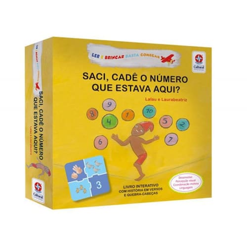 Saci, Cade O Numero Que Estava Aqui No livro interativo Saci, cadê os números que estavam aqui, a criança Terá contato com os números de 1 a 10, de forma lúdica e prazerosa, por Meio de um dos principais personagens do folclore brasileiro: o Saci, Que no mundo fantástico é aquele que esconde as coisas das pessoas Pregando-lhes uma peça. Após a leitura, é hora de montar o quebracabeças Que acompanha o livro e torna essa experiência muito mais Prazerosa, reforçando o aprendizado dos números. O objetivo é que As crianças, além de unir as peças correspondentes à mesmo número, Consigam encaixá-las, para estimular também a coordenação motora. CONTEM: quebra-cabeças 50 peças Mais detalhes: Subtitulo: Saci, Cade O Numero Que Estava Aqui Paginas: 32 Tipo de capa: Brochura ISBN: 9788545559016 ISBN10: 8545559011 Data Publicação: 30/12/1899 Idioma: Portugues Edição: 1 Condição do Item: Novo Tipo de narração: 30/12/1899 Ean: 9788545559016