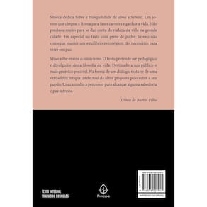O diálogo Sobre a tranquilidade da alma foi claramente escrito como um meio de orientação de todos aqueles que aspirassem a dedicar-se ao aperfeiçoamento moral. É dirigido ao amigo Aneu Sereno, pertencente à ordem equestre, formada pelos cidadãos mais abastados. Texto por Clóvis de Barros Filho Editora: principis Ciranda Cultural ISBN: 9786555522945 Dimensões: 23 cm x 16 cm Número de Páginas: 96 Acabamento: Brochura Autor a : Sêneca Ano de Publicação: 2021 Idioma: Português Condição do Item: Novo Tipo de Narração: Manual Tipo de Capa: Comum Formato: Papel Ean: 9786555522945