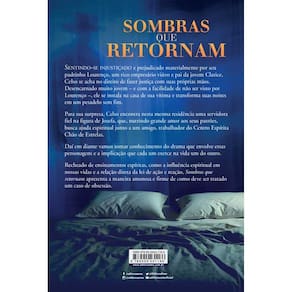 SENTINDO-SE INJUSTIÇADO e prejudicado materialmente por seu padrinho Lourenço, um rico empresário viúvo e pai da jovem Clarice, Celso se acha no direito de fazer justiça com suas próprias mãos. Desencarnado muito jovem – e com a facilidade de não ser visto por Lourenço –, ele se instala na casa de sua vítima e transforma suas noites em um pesadelo sem fim. Para sua surpresa, Celso encontra nesta mesma residência uma servidora fiel na figura de Josefa, que, nutrindo grande amor aos seus patrões, busca ajuda espiritual junto a um amigo, trabalhador do Centro Espírita Chão de Estrelas. Daí em diante vamos tomar conhecimento do drama que envolve essas personagens e a implicação que cada indivíduo exerce na vida um do outro. Recheado de ensinamentos espíritas, como a influência espiritual em nossas vidas e a relação direta da lei de ação e reação, Sombras que retornam apresenta a maneira amorosa e firme de como deve ser tratado um caso de obsessão. INFORMAÇÃO ADICIONAL ACABAMENTO: Brochura PESO: 0,330 DIMENSÕES: 14×21 EDIÇÃO: 1ª ANO DE LANÇAMENTO: 2024 NÚMERO DE PÁGINAS: 256 ESTADO DO LIVRO: NOVO