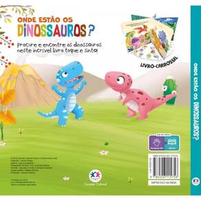 Livro Carrossel com Toque e sinta, procure e encontre os dinossauros neste incrível livro. Além de desenvolver a percepção tátil, com história, trazendo texturas para os dedinhos.
