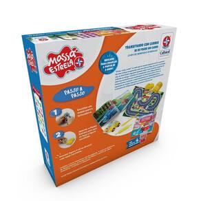 Livro Transitando com Carros e Massinha - Estrela O livro Transitando com carros com Massa Estrela conta com os moldes do kit carrinhos agora com uma nova repaginada e mais completo! O kit conta com 4 potes de massa estrela nas cores vermelho, azul, amarelo e verde, moldes de carrinho e cenário interativo com explicações simplificadas a respeito de leis de trânsito e de como a importância de a criança prestar atenção em vias públicas e entender mais sobre a questão.