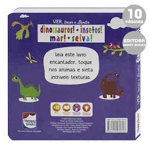 Livro ver, tocar e sentir: dinossauros - happy books leia este livro encantador, toque nos animais e sinta incríveis texturas, você vai se surpreender durante a leitura, explore as curiosidades de cada animalzinho características: - habilidades: desenvolve a leitura, habilidades sensoriais e desperta a criatividade; - dimensões: 17,5 x 17,5cm; - número de páginas: 10 páginas; - faixa etária: a partir de 12 meses; - acabamento: cartonado com recurso toque e sinta de silicone; -imagens meramente ilustrativas- atenção: a cor do produto pode variar de acordo com o monitor atenção: o fabricante pode alterar a cor de alguma parte do produto sem aviso prévio. Homologação Inmetro: CE-BRI/IQB 006107 54705/21-001
