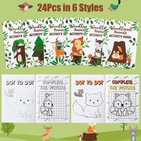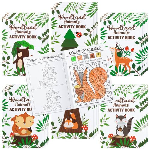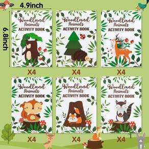 Dvbonike 24 unidades de livros de atividades de animais da floresta para crianças, criaturas da floresta, minijogos divertidos para colorir a granel