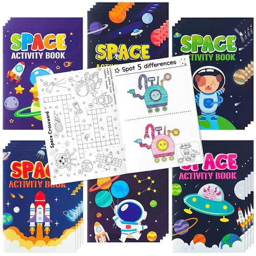 Mini livros de atividades Space para festas de aniversário, sacolas de guloseimas, suprimentos para a sala de aula, lembrancinhas de volta às aulas