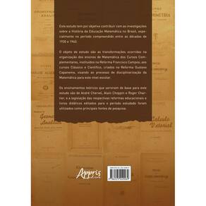 Este estudo tem por objetivo contribuir com as investigações sobre a História da Educação Matemática no Brasil, especialmente no período compreendido entre as décadas de 1930 e 1940. O objeto de estudo são as transformações ocorridas na organização dos ensinos de Matemática dos Cursos Complementares, instituídos na Reforma Francisco Campos; aos cursos Clássico e Científico, criados na Reforma Gustavo Capanema, visando ao processo de disciplinarização da Matemática para este nível escolar. Os ensinamentos teóricos que serviram de base para este estudo são de André Chervel, Alain Choppin e Roger Chartier, e a legislação das respectivas reformas educacionais e livros didáticos editados para o período estudado foram utilizados como principais fontes de pesquisa.