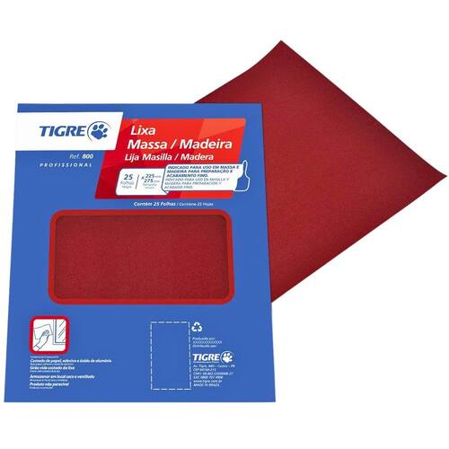 Lixa Massa/Madeira 800 Grossa 60 – Pincéis Tigre A Lixa Massa/Madeira Grossa 60 da Pincéis Tigre é ideal para o lixamento de rebocos, massa corrida, gesso e alvenaria, ajudando a eliminar imperfeições e preparar as superfícies para a pintura. Também é excelente para madeira, deixando caixas, móveis e peças sem farpas ou desníveis, garantindo um acabamento uniforme e profissional.