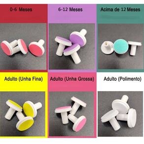 O produto acompanha 6 lixas, 3 para bebes variando a idade e 3 para adultos.