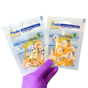 A lixa possui sistema de fixação com 3 furos, garantindo encaixe adequado quando utilizada com mandris compatíveis do sistema PodoSystem.